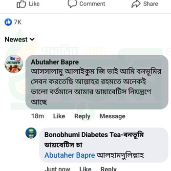 বনভূমি ডায়াবেটিস চা আমায় সুস্থ্য জীবন ফিরিয়ে দিয়েছে আলহামদুলিল্লাহ্।